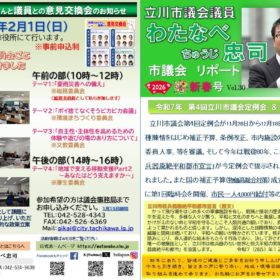 市民にやさしい住みよい立川を目指す、わたなべ忠司を応援、または一緒に活動いただける方を募集しています。